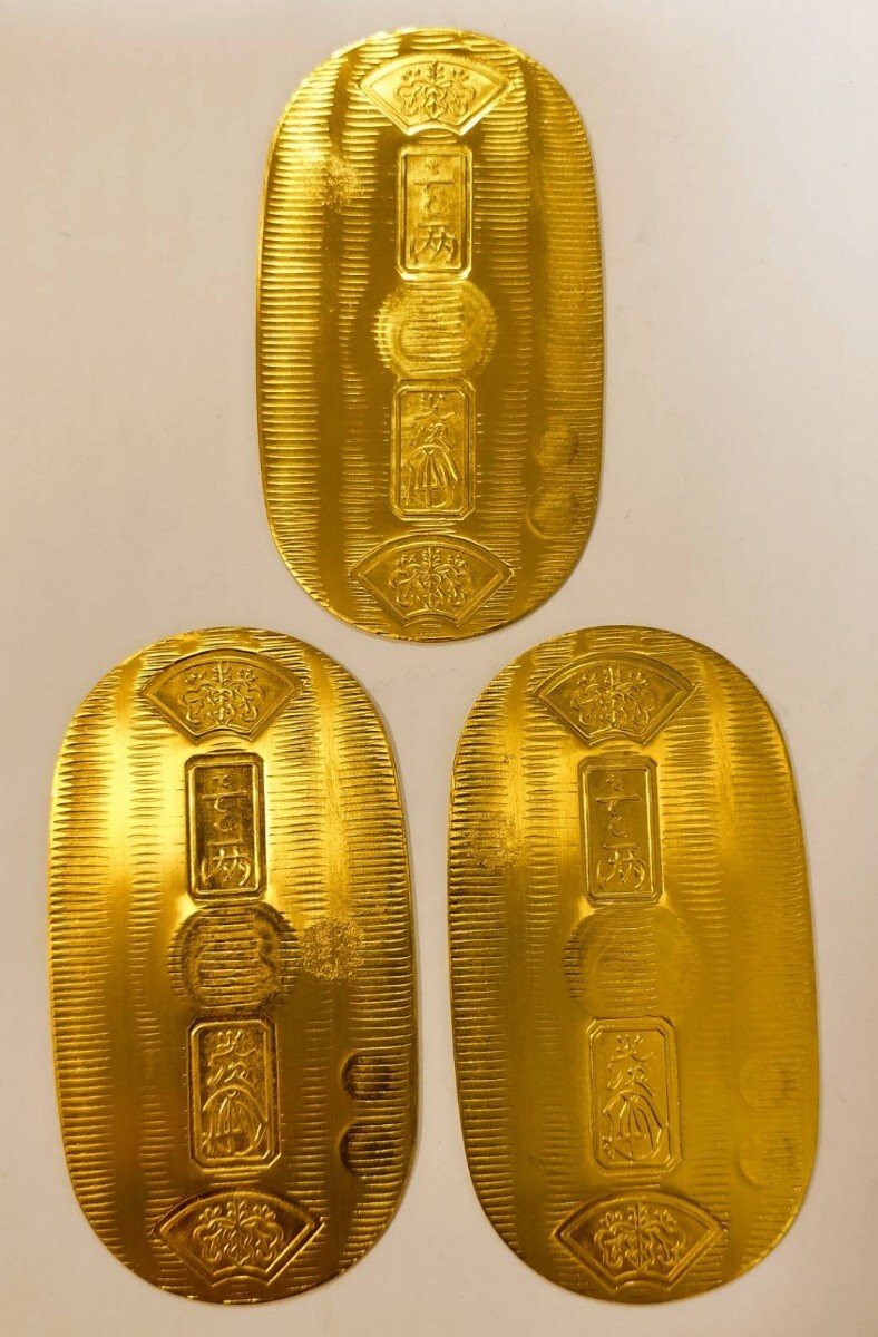 - (3枚)佐渡小判 元文小判 元禄小判 三枚組 桐刻印 花押