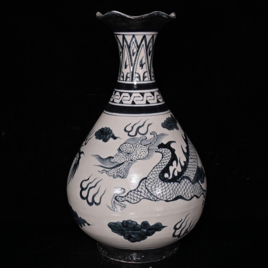 - ▽鴻▽ 宋 吉州窯 龍紋 花口玉壺春瓶 古陶瓷品 置物 古賞物 中国古玩 中国古美術