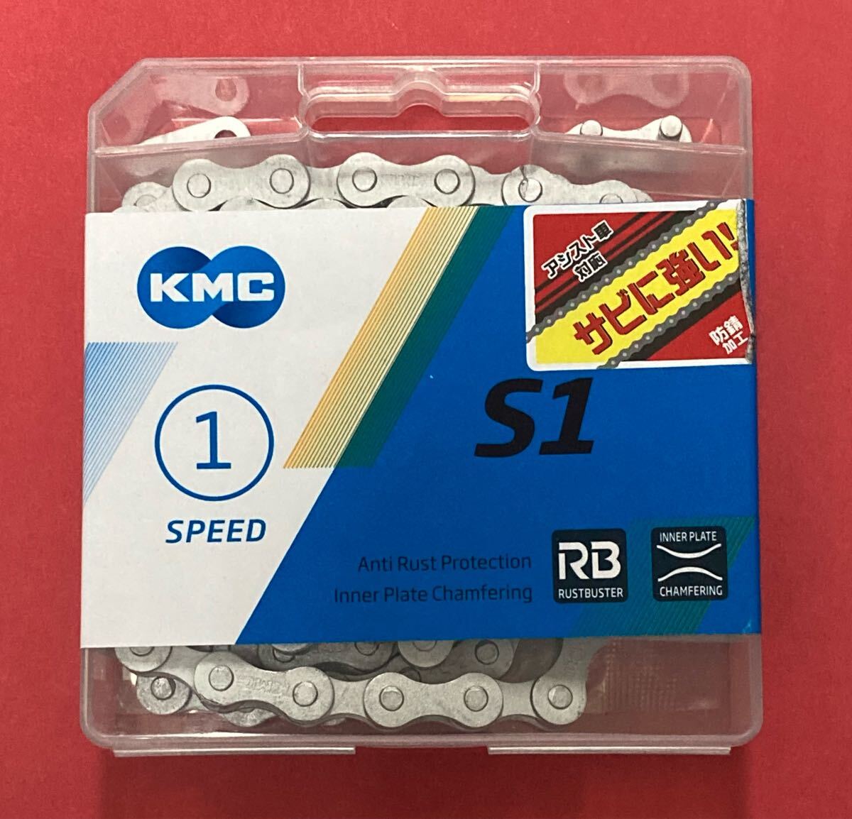 - 未使用 ♪ KMC 自転車 シングル用 チェーン S1 スピード 130リンク RUST BUSTER シルバー (管理99)
