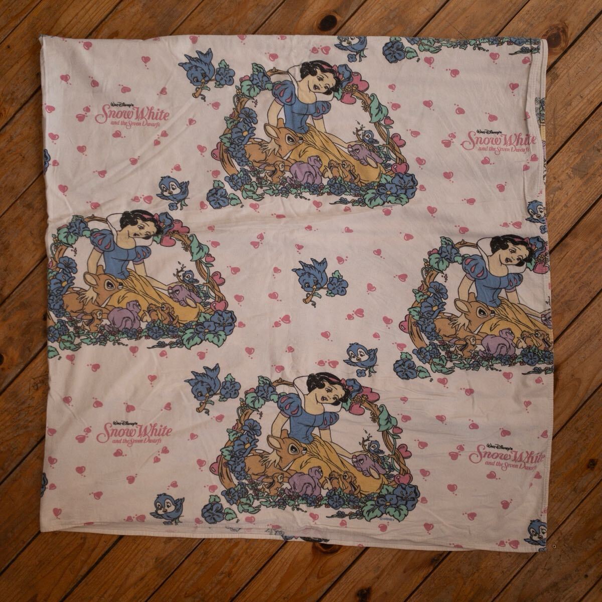 > USAヴィンテージ ベッドシーツ 白雪姫 リメイク生地 素材 ディズニー プリンセス ホワイト フラットシーツ アメリカ仕入 B2434