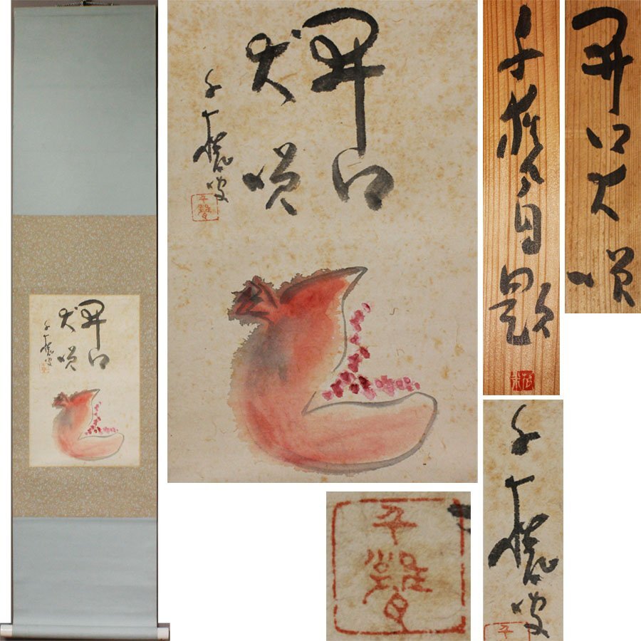 - 《源》【即決・送料無料】掛け軸 小川千甕 自画讃「柘榴図」/共箱付