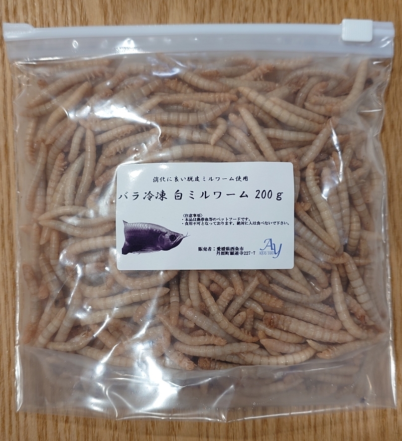 - アロワナの餌に オリジナル バラ冷凍 白ミルワーム(脱皮ワーム)200g入 ミルワーム