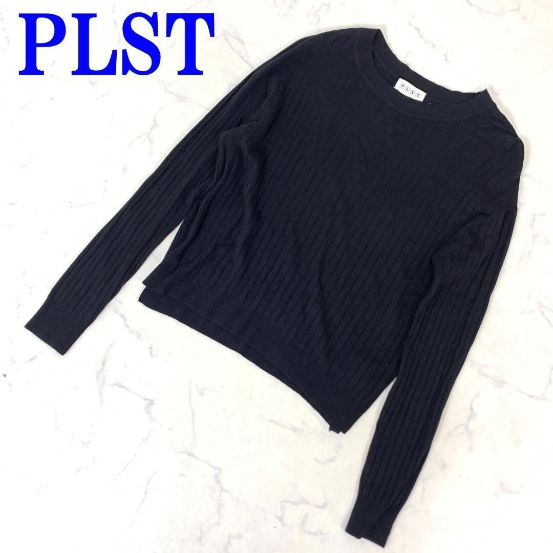 - PLST プラステ ニット 黒 ブラック 長袖 レーヨン ナイロン ポリウレタン太リブ M C2279