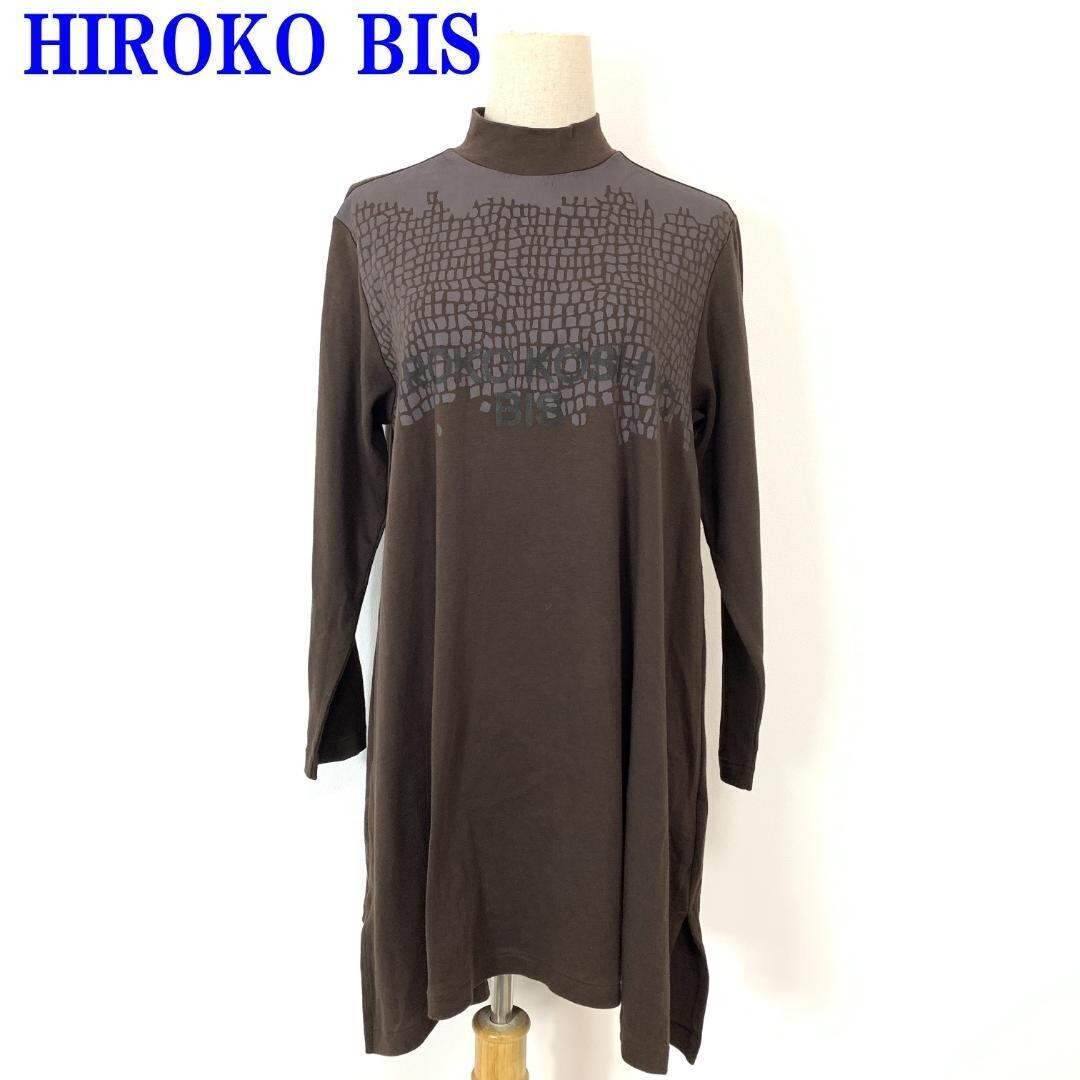 > ヒロコビス 長袖ワンピース ブラウンHIROKO BIS ヒロココシノ ロゴデザイン ロング 綿100% M相当 C2551
