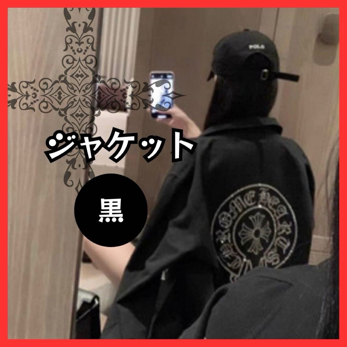 - クロス柄 ジャケット 黒 ブラック Gジャン 上着 アウター Mサイズ