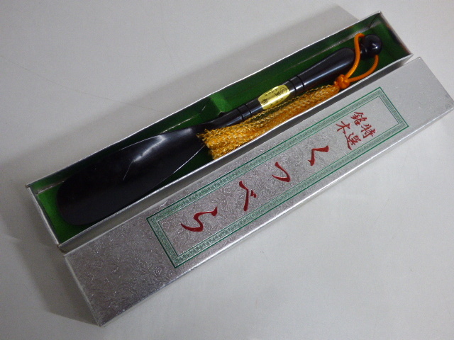 - ま135.特選銘木 くつべら 靴べら 黒壇 天然木 本地手作り
