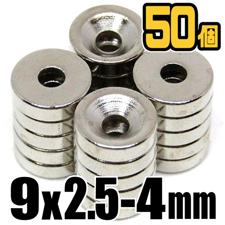 - ★ ネオジム 超強力 磁石 ★ 直径9mm×2.5mm 穴あき 3mm ★ 丸形 マグネット【50個セット】★ 送料無料 ★