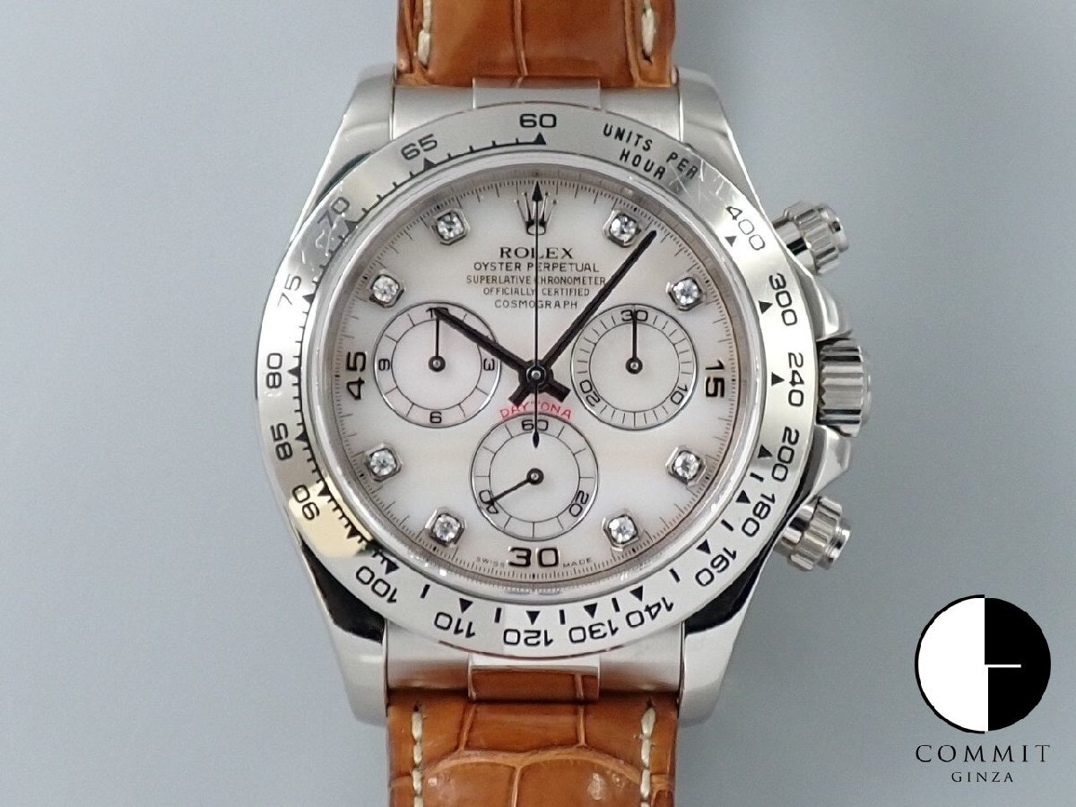 全体的に使用に伴うスレキズが見られますが、ノンポリッシュと思われるベゼルのエッジがしっかり残った良個体です。希少で人気の高いピンクシェル 8Pダイヤ文字盤を搭載しておりますが、保証書が付属しない分価格を抑えさせていただきました。弊社提携工房にてオーバーホール済みとなります。是非ご検討ください。