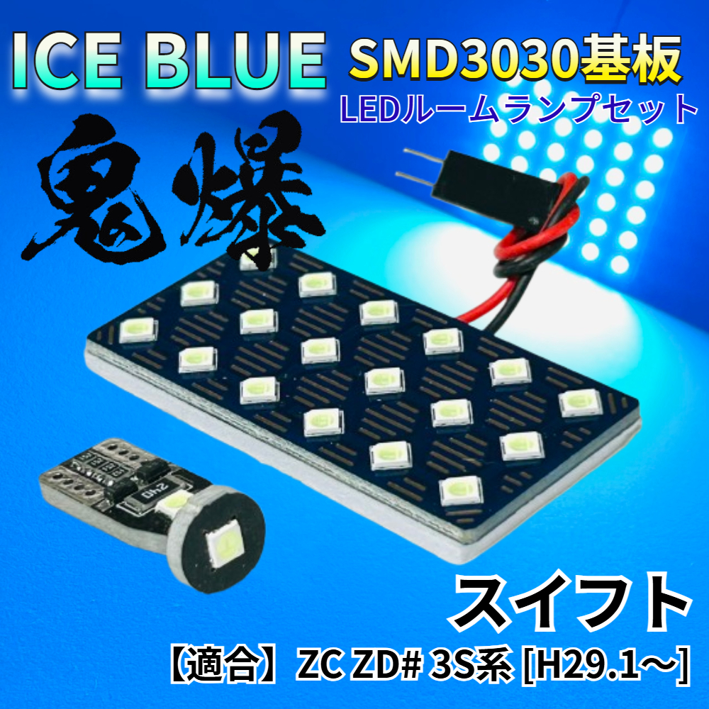> 【アイスブルー】スイフト ZC ZD# 3S系 [H29.1~] 鬼爆基板 3030SMD LED ルームランプ セット 車内灯 室内灯 パーツ アクセサリ