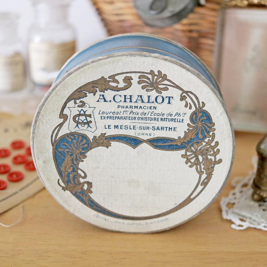 - 『手のひらほどの大きな丸い薬箱 』1900年 フランス アンティーク 紙箱 薬の紙箱 丸い箱 ファーマシーボックス 缶 ギフトボックス :C