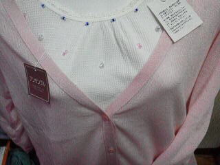 - ●新品可愛いピンクカーデーインナービーズデザインアンサンブルLLサイズ