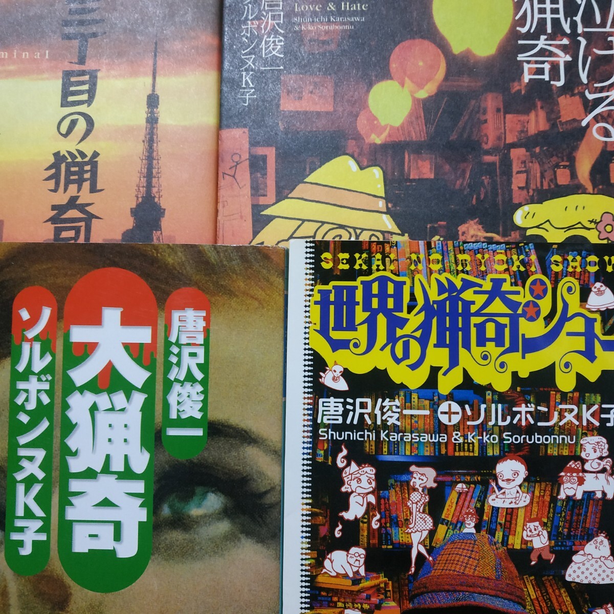 - 唐沢俊一+ソルボンヌK子4冊 大猟奇 世界の猟奇ショー 3丁目の猟奇 泣ける猟奇 昭和30年代 カルト と学会 検索→数冊格安 面白本棚送料230円