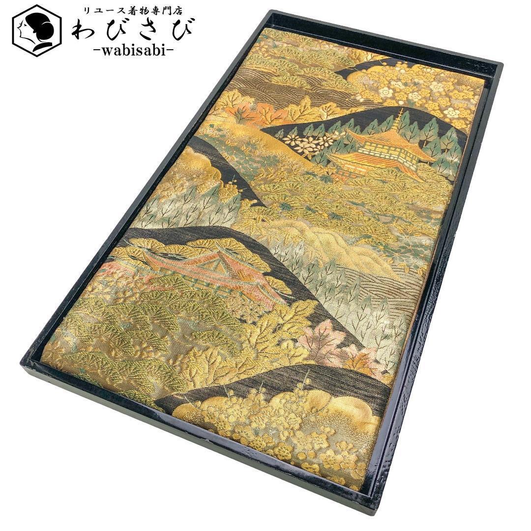 - 袋帯 正絹 渓流 九百錦 寺院風景 松梅山 金糸 金色 O-4936 着物 きもの kimono 和服 和装 中古 リサイクル着物 【送料無料】