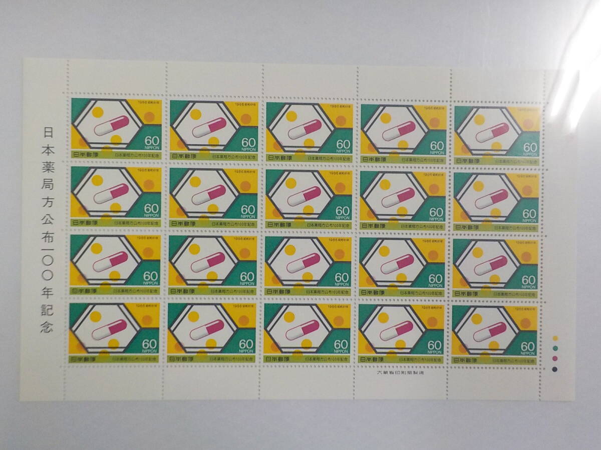 - 日本薬局方公布 100年記念 1986年 構造式とカプセルと錠剤 / 60円切手シート 未使用