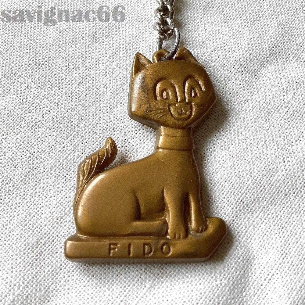 > 60年代 フレンチキーホルダー FIDO 猫 ゴールド ★ 60s フランス vintage レトロ ネコ チャーム ねこ グッズ 当時物 フィギュア ブロカント