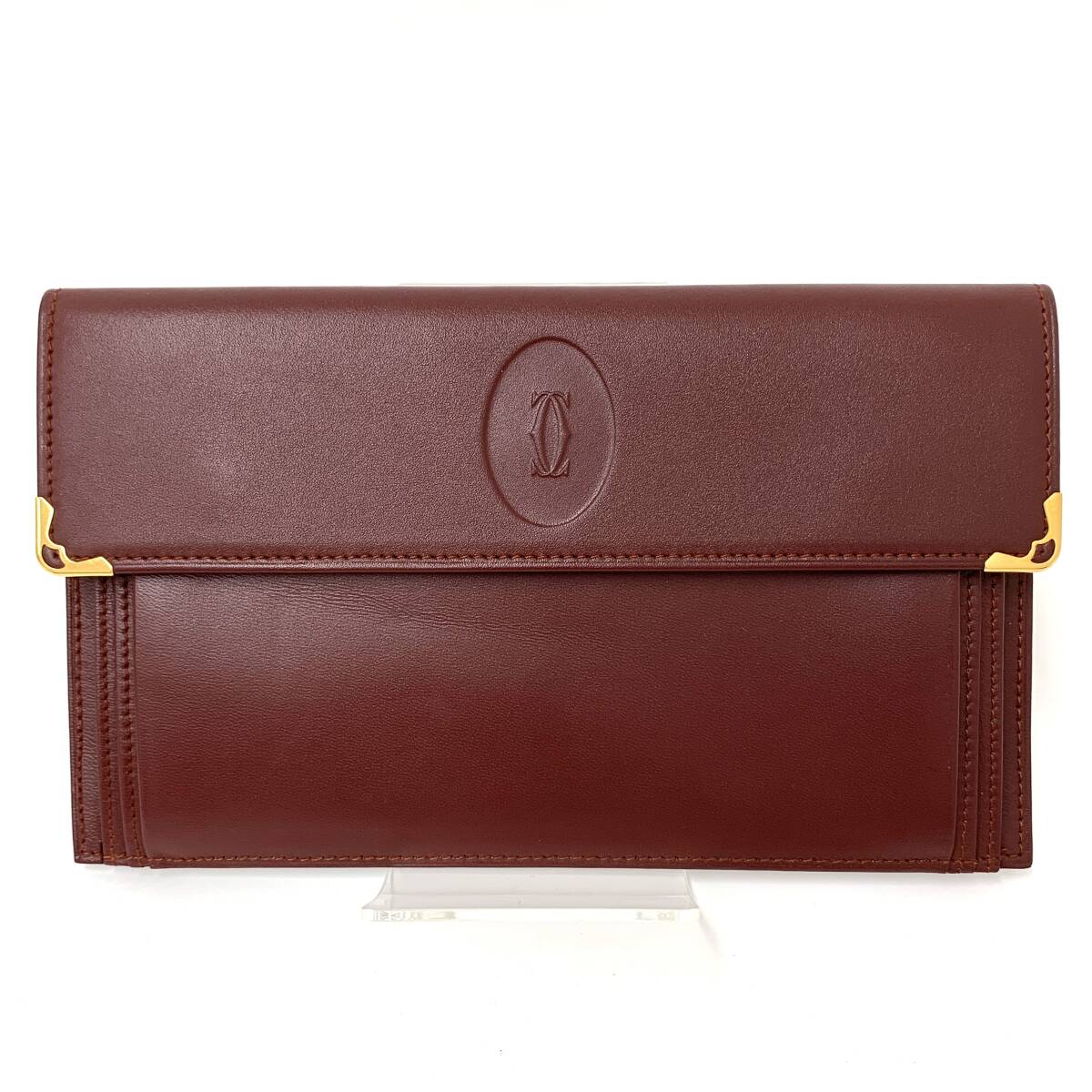 - D0558 美品! 格安! Cartier カルティエ マストライン 二つ折り 長財布 札入れ ロングウォレット マルチケース レザー ボルドー