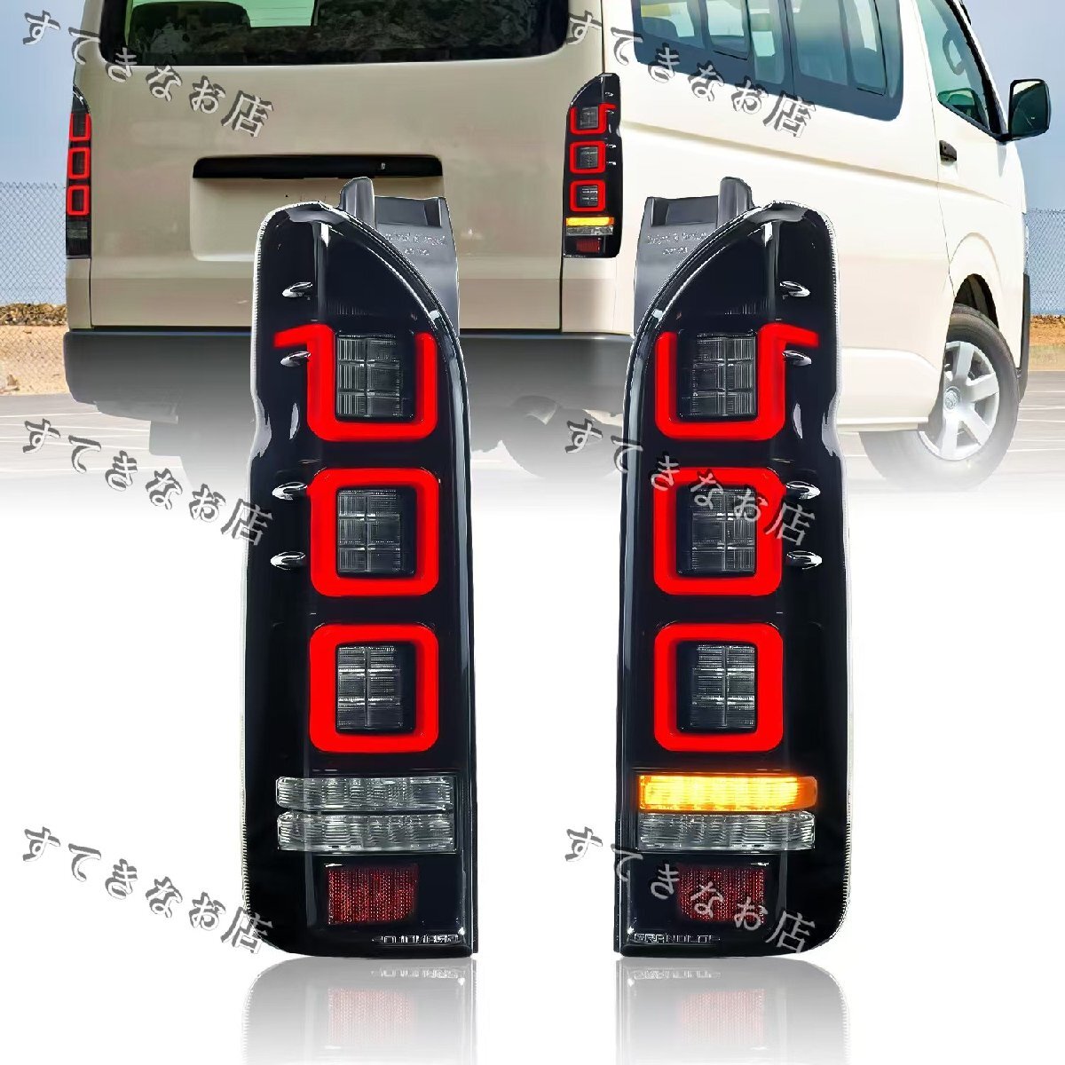 - トヨタ ハイエース テールランプ 200系 1~6型 テールライト 流れるウインカー ディライト LED一体化 ハイエースワゴン ハイエースバン 汎用
