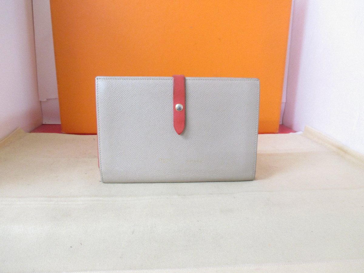 > 本物保証【即決で送料無料】セリーヌ /ラージ ストラップウォレット/2つ折/バイカラー/男女兼/革/財布/Celineの正規品