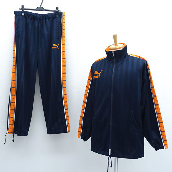 > ★ プーマ セットアップ ジャージ ストライプ ネイビー×オレンジ サイズL-O 90S (0220520361)
