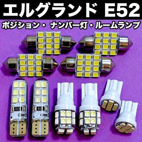 > ★激安★エルグランド E52 適合10個セット LEDバルブ ウェッジ球 T10 LED ルームランプ 車内灯+ナンバー灯+スモールランプ ホワイト