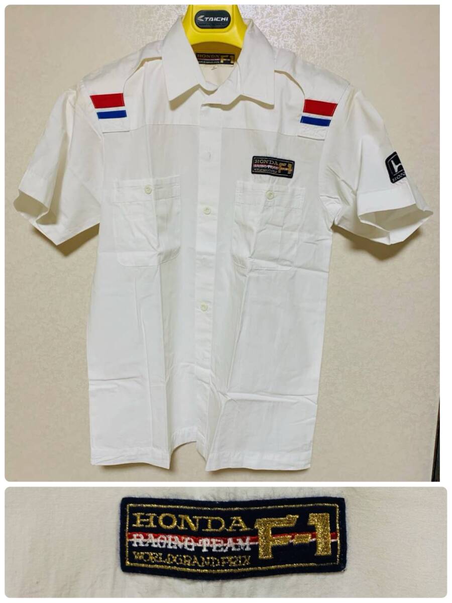 > HONDA RACING F1 シャツ Lサイズ ホワイト ホンダ レーシング 刺繍 ワッペン 半袖 ポロシャツ 白 当時物