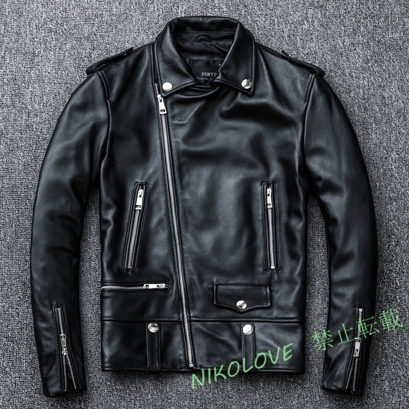 - 新品 シンプルな大人の逸品 立ち襟な羊革 本革 レザー ジャケット ライダース 革ジャン カジュアル