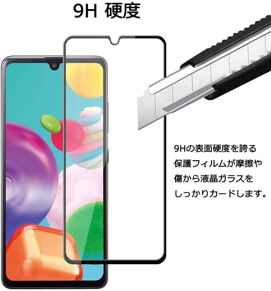 - 黒 Galaxy A41 ガラス フィルム SC-41A SCV48 ギャラクシー 画面 液晶 保護 シート カバー 9H スクリーン Glass Film 丈夫 衝撃