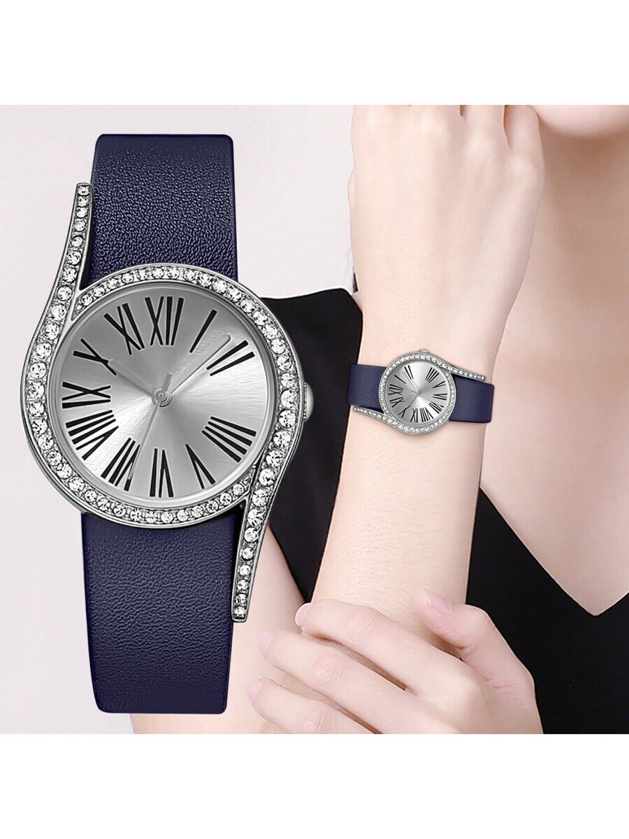 - 腕時計 レディース クォーツ 女性用エレガントファッション ローマ数字 ラインストーン付き ウォッチケース レザーストラップ クオ