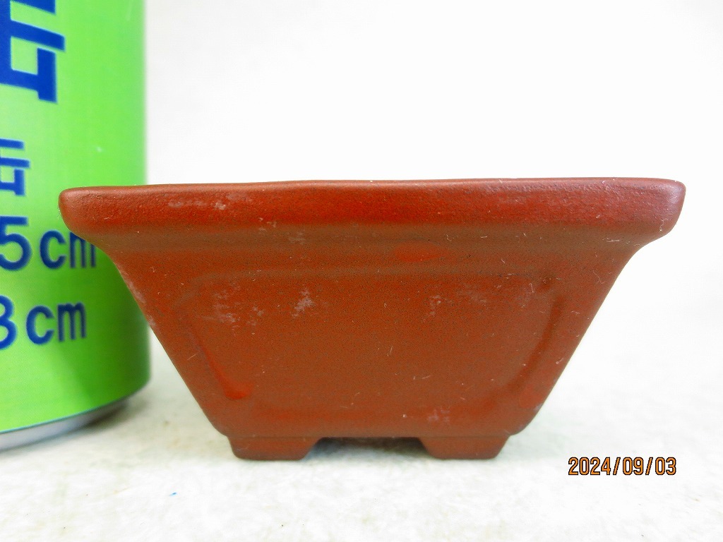 - [緑の市場] 小品盆栽鉢 銘有り 朱泥正方鉢 6.3㎝ (T381)定形外郵便送料無料/ゆうパック発送有料*選択可※無料発送はポスト投函
