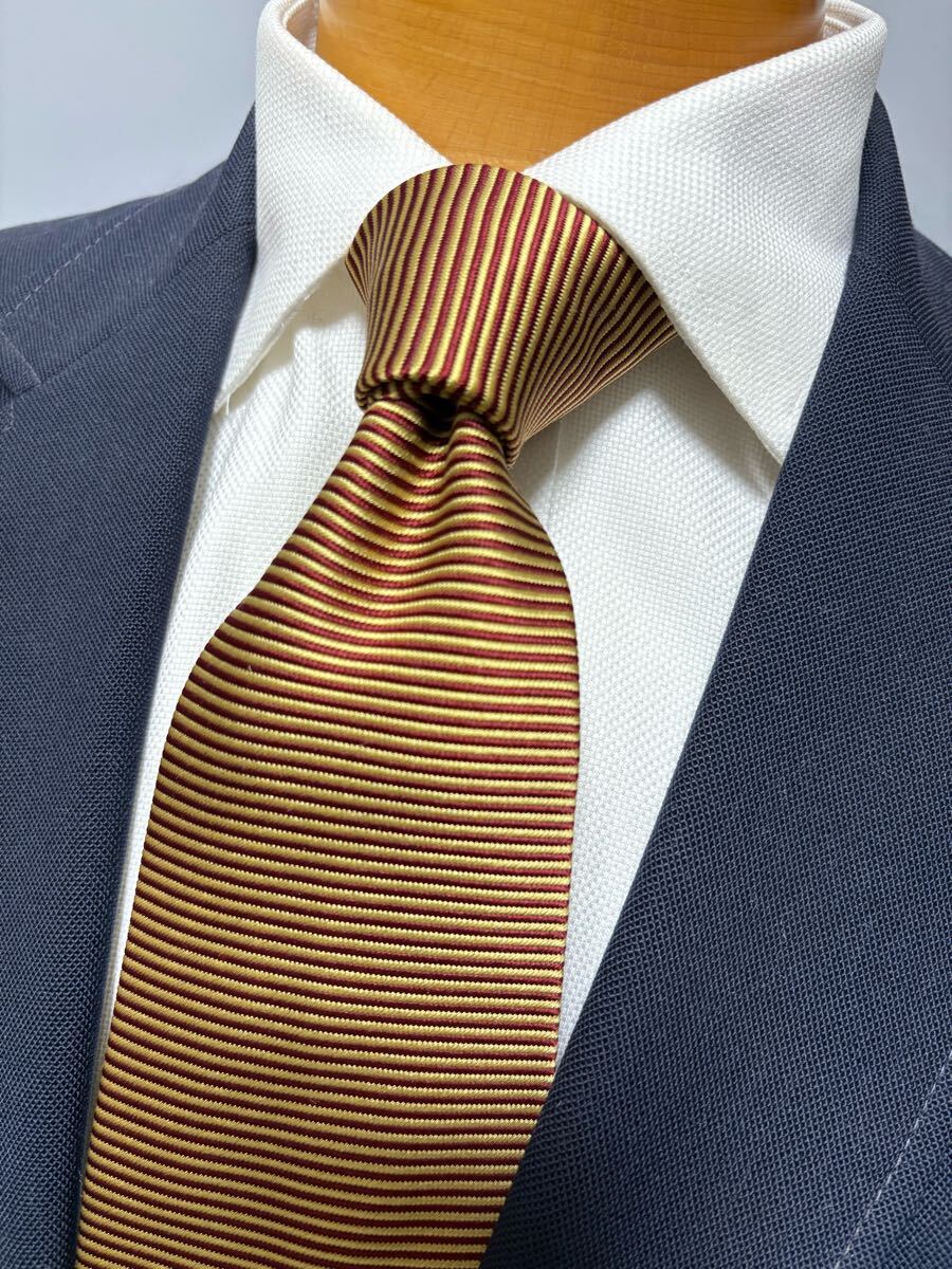 - 【美品】トラディショナル アラ商事ネクタイ レッド×ゴールド大剣約9.5cm 高級シルク ボーダー 2504