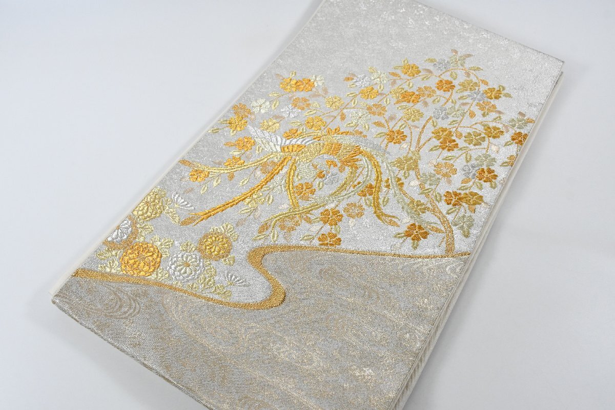 - 袋帯 未仕立て お太鼓柄 金糸 銀糸 花 鳥 帯丈438cm ★着物屋 ne-14759 桜庭呉服店
