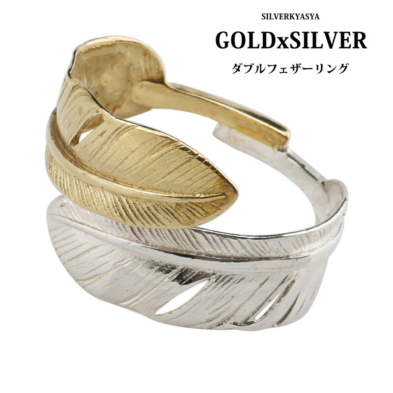 - シルバー925 真鍮 ダブルフェザーリング ゴールド シルバー 羽根 ネイティブアクセ人気商品