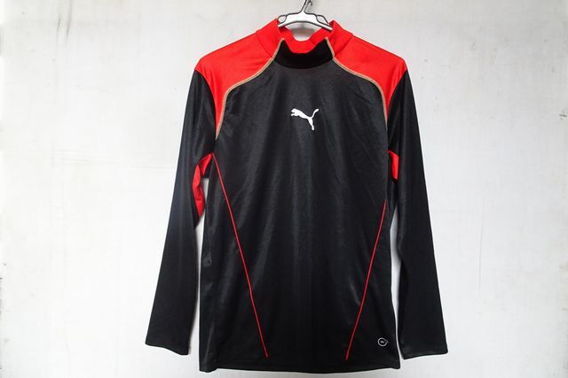 - PUMA/プーマ/653883/長袖プルオーバー/BTS長袖モックネックプラクティスシャツ/赤切替/ロゴプリント/スポーツ/黒/ブラック/Mサイズ(4/15R7)
