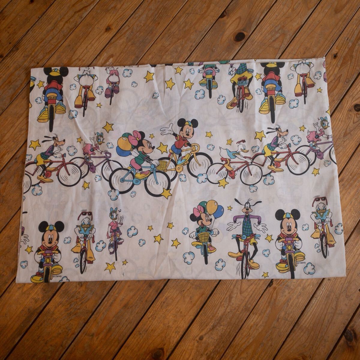 - USAヴィンテージ ベッドシーツ ディズニー Disney リメイク生地 素材 サイクリング 自転車 フラットシーツ スター 星 アメリカ仕入 B2543