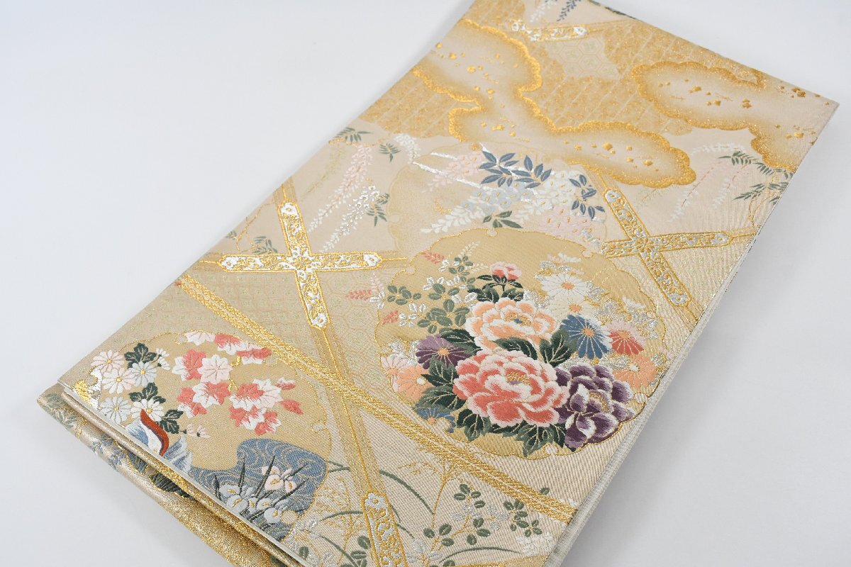 > 袋帯 九百本金錦 金糸 花 六通柄 帯丈422cm ★着物屋 ne-14794 桜庭呉服店