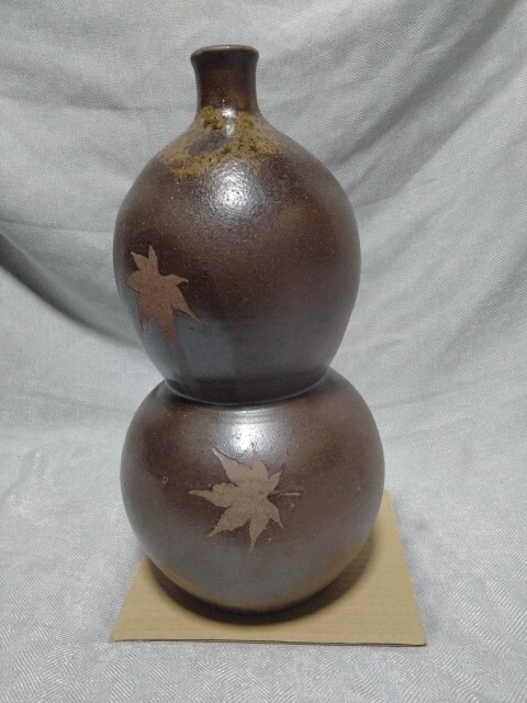 - 備前焼 瓢箪 かえで もみじ 大型花瓶 39x22cm 裏印せ