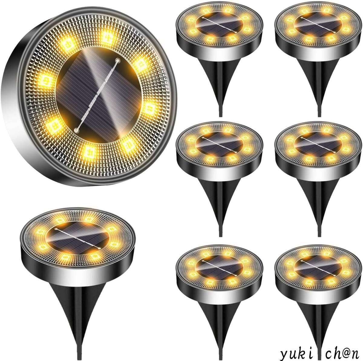 > ソーラーライト 8個セット 電球色 屋外 IP68防水 埋め込み式 ガーデンライト ソーラー 自動点灯 光センサー 太陽光パネル充電 高輝度 LED