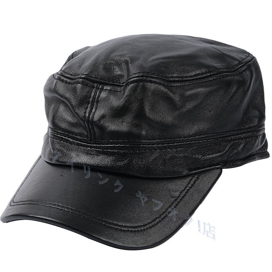 - 新品本革帽子 マリンキャップ 羊革 ウール革 メンズ レディース オシャレ 男女通用 つば付き 通勤 ブラック 春夏にぴったり