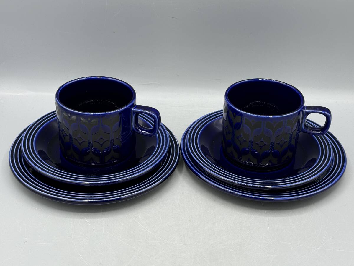 - 英国 ホーンジー ヘアルーム ブルー 2客 トリオ カップ&ソーサー サイドプレート 皿 カップアンドソーサー (792)