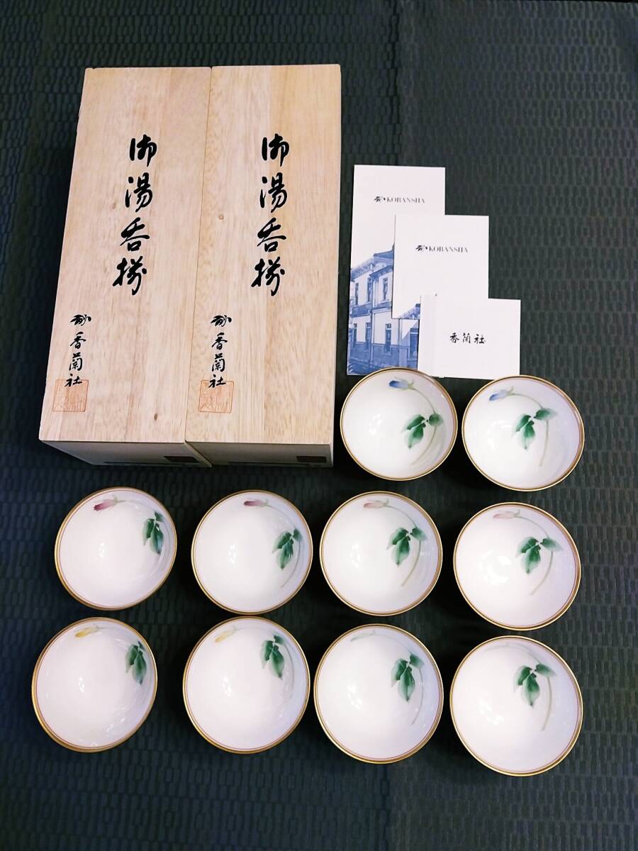 - 新品 美品 香蘭社 食器 磁器 湯のみ 10客 化粧箱 茶碗 湯呑み 茶わん