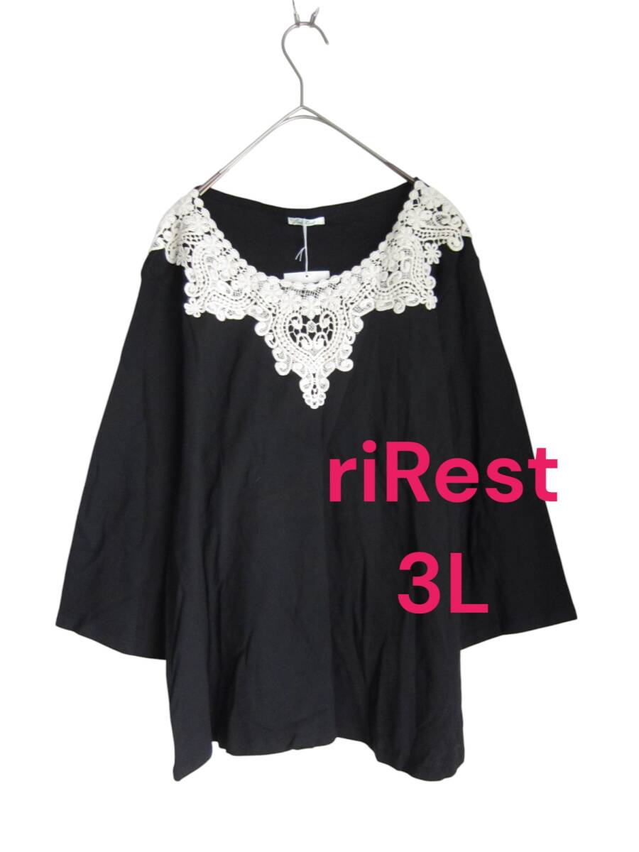 > ★送料無料 G13 新品 【3L】 riRest ブラック レース 7分袖 カットソー 大きいサイズ ゆうパケットポスト 上品