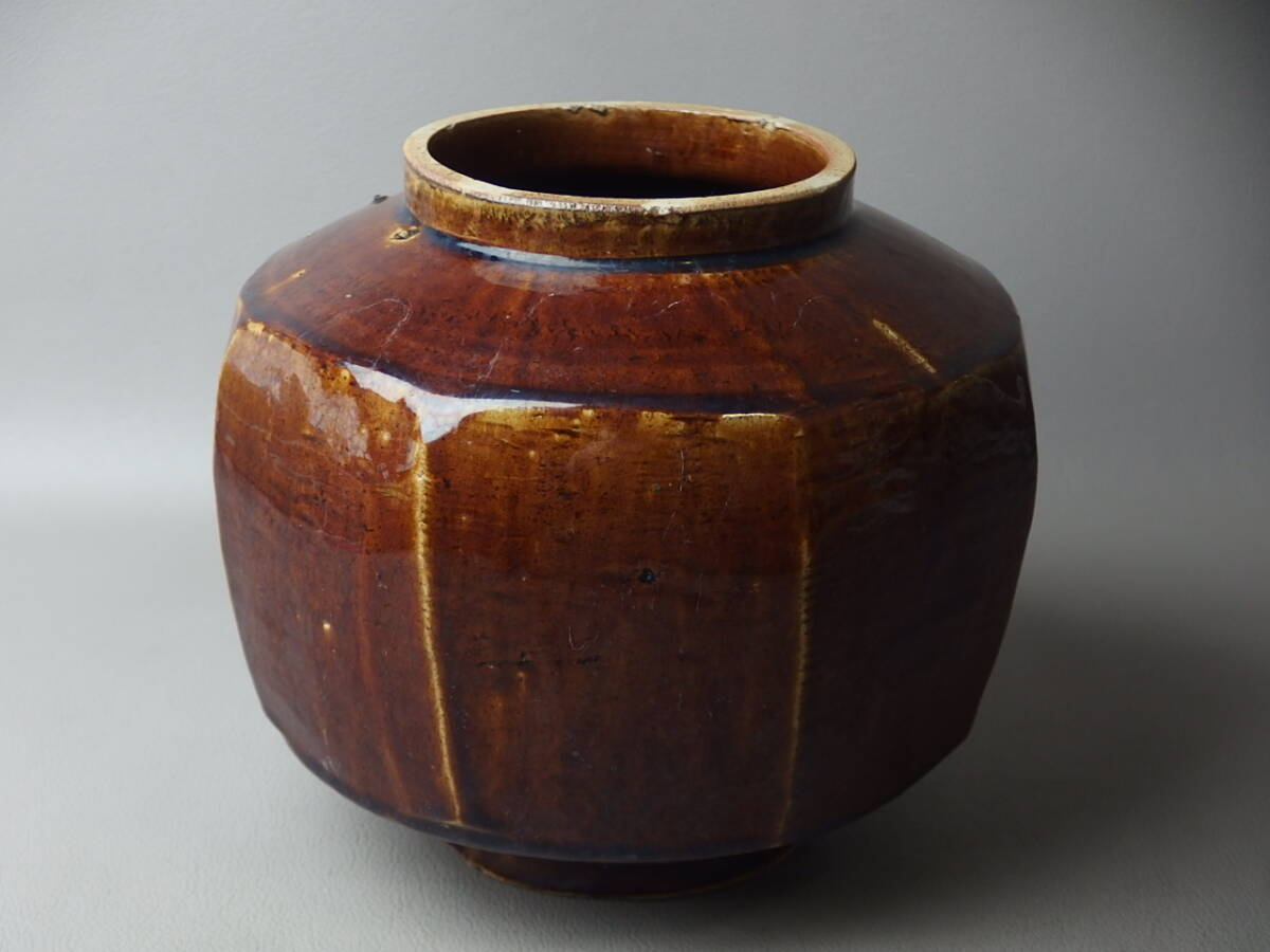 - 【骨董・茶道具】★李朝★★飴釉面取壷 gh059tb21.7 提灯壷 花道 華道 朝鮮美術