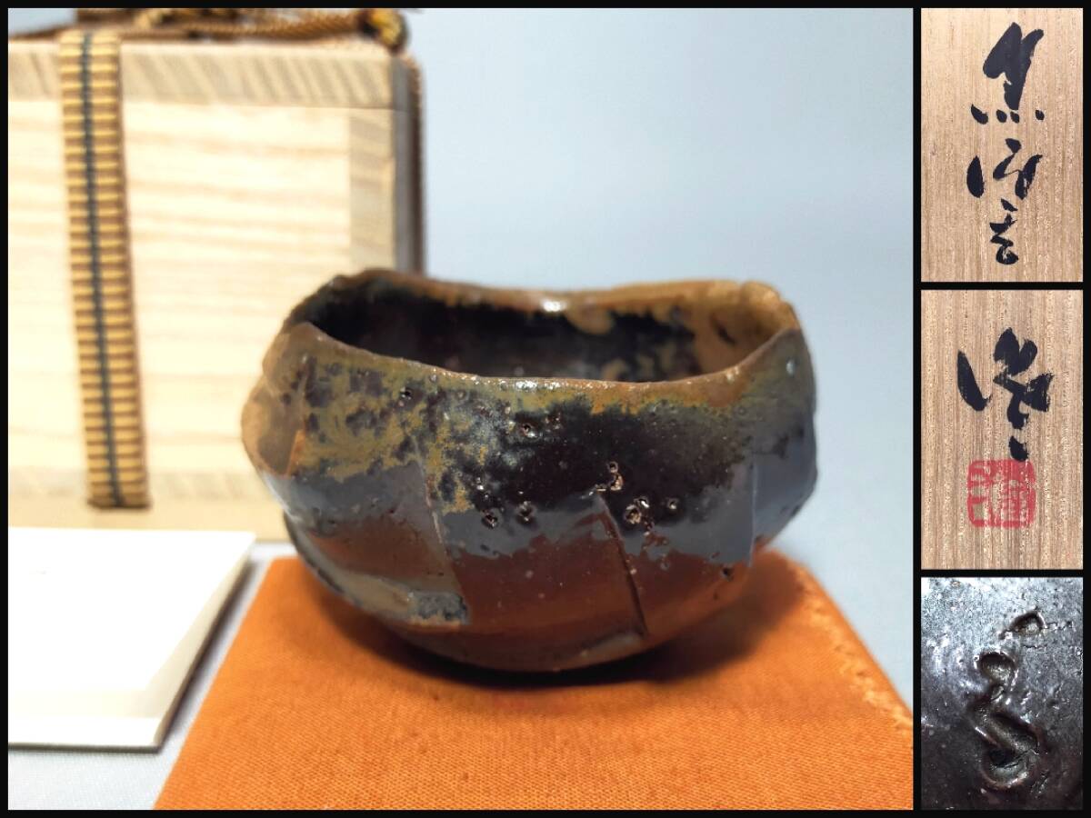 - IH09 備前焼 酒器 名工 隠崎隆一 造 黒酒呑 ぐい呑 栞・共布・共箱 人気の黒 逸品
