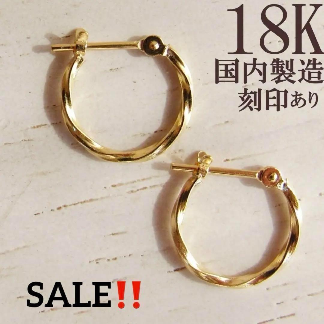- 18K K18 ピアス フープピアス ツイスト ねじり 18金 刻印 刻印あり