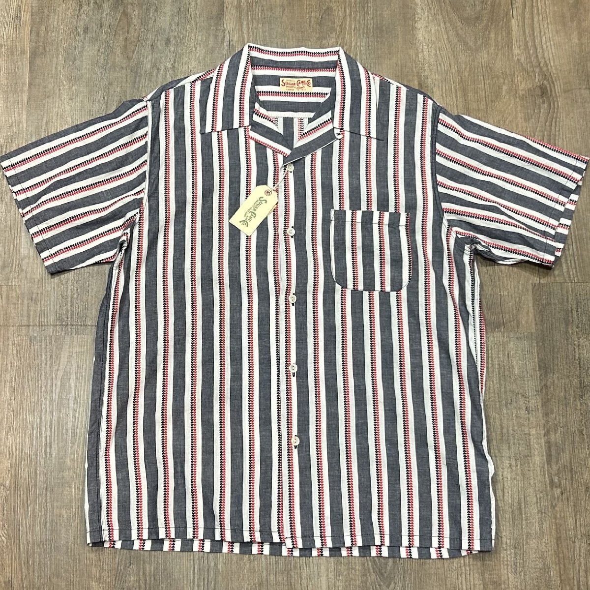 > シュガーケーン ハートストライプ 半袖シャツ アメカジ SC39119 128)ネイビー サイズL トップス