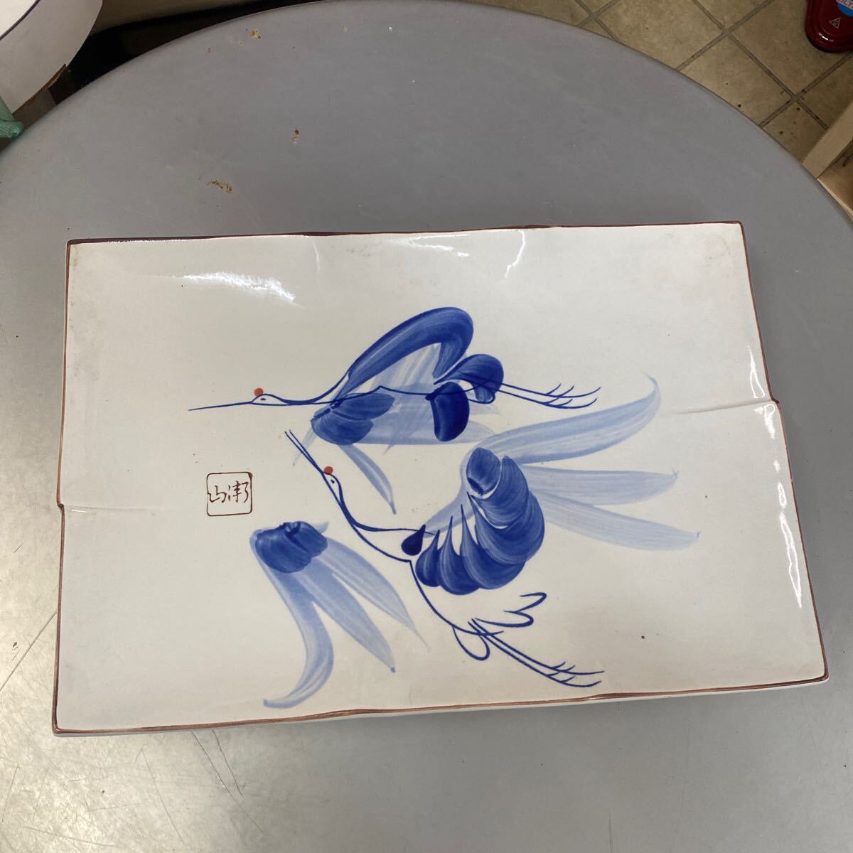 - S 宝山窯 手書き 鶴 つる 縁起物