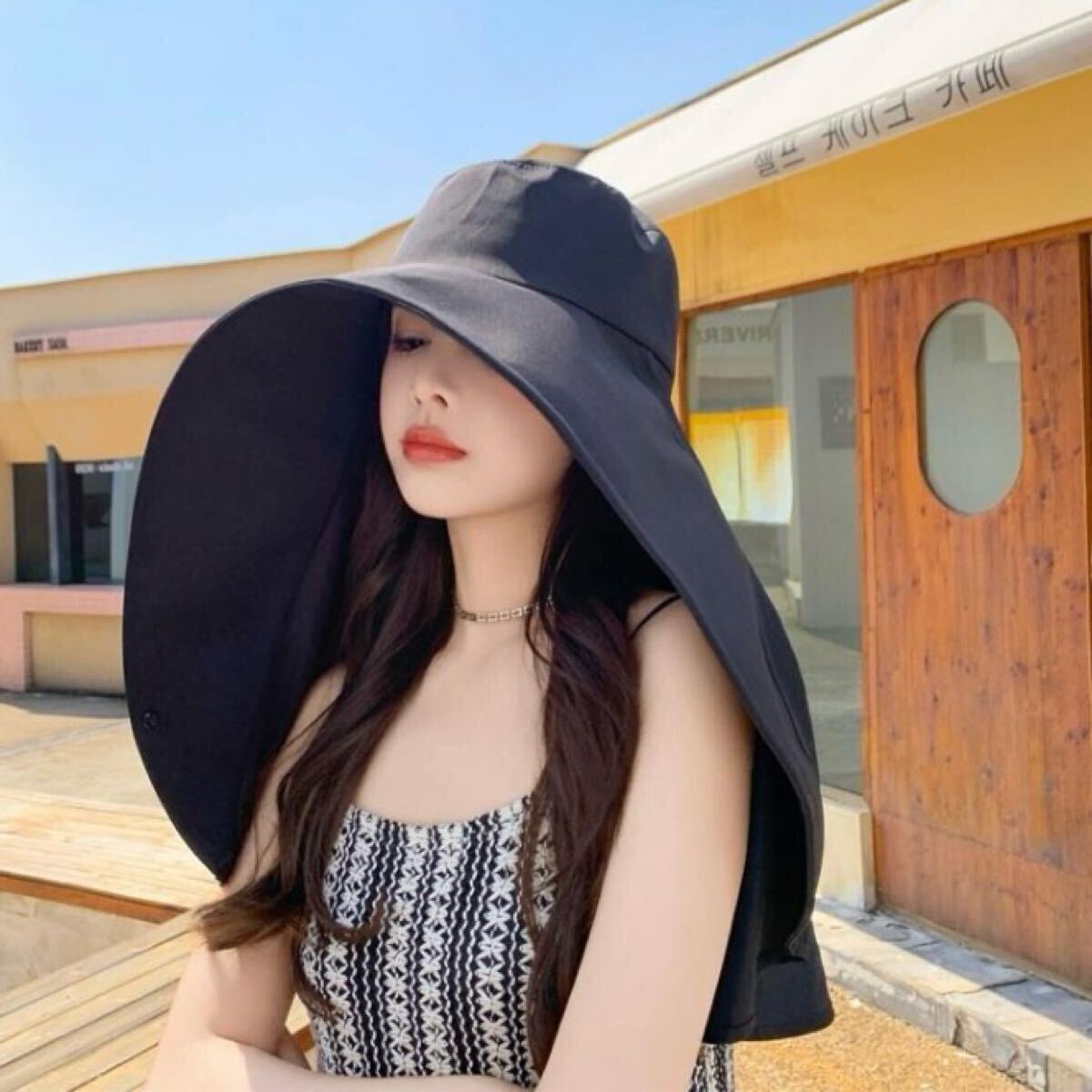 - つば広帽子 ハット ブラック レディース UVカットハット 紫外線対策 日焼け防止 ビーチ 旅行 農作業 日よけ帽子