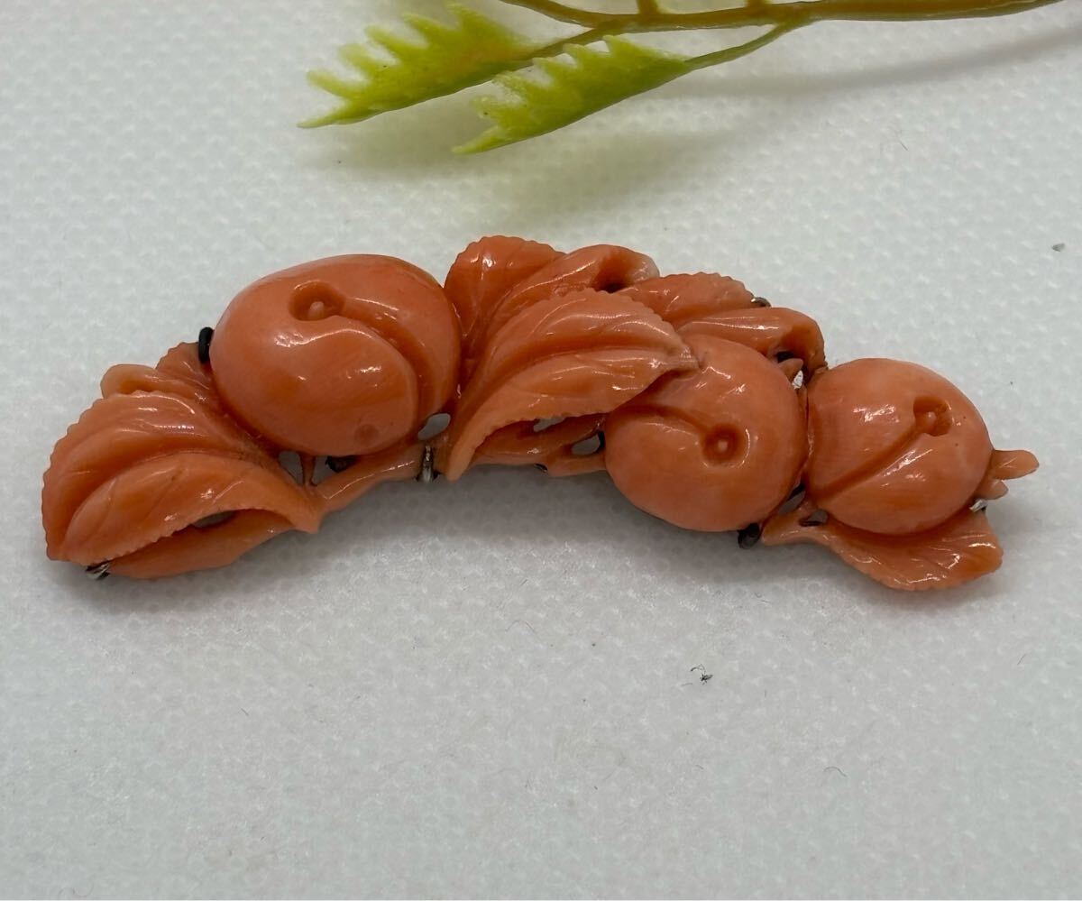 - 天然珊瑚 ブローチ オレンジカラー(s620)