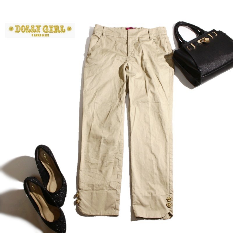 - 美品 DOLLY GIRL BY ANNA SUI ドーリーガールバイアナスイ 春 夏 8分丈 コットン チノパンツ 1 カーキベージュ クロップドパンツ 可愛い