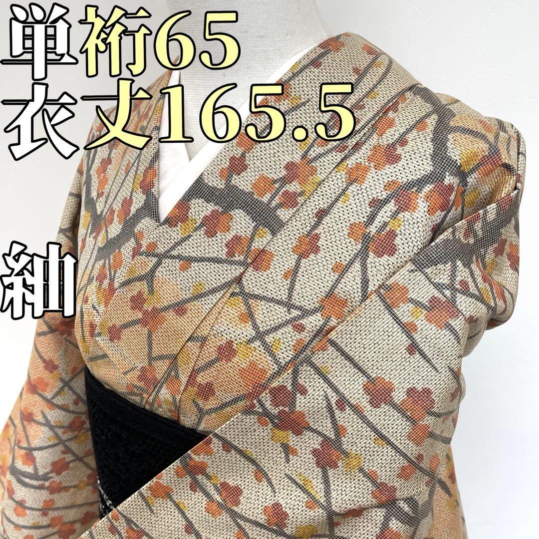 - 【着物と帯 時流】ヒ108y◆正絹 単衣 紬◆裄65丈165.5 枝花模様 美品